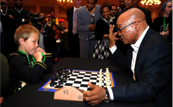 The championships ended in a stalemate for Zuma yesterday when he drew his 20-minute match against Keagan Rowe, from East London. Rowe, a five-year-old pupil of Stirling Primary School, was the youngest competitor at the event. Zuma justified the draw by saying: "I wanted to balance the game so I sacrificed some pieces."